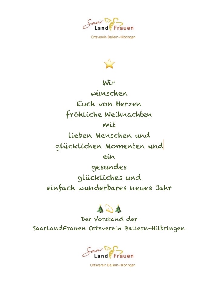 „Alle Jahre wieder“. Zu unserer Weihnachtsfeier am Donnerstag, 04.12.2025 um 18.00 Uhr, laden wir alle Mitglieder unseres Ortsvereines herzlich ein. Gefeiert wird in den Bürgerstuben des Bürgerhauses Besseringen. Damit wir alles gut organisieren können und auch das Essen bestellen müssen, meldet Euch bitte an bis spätestens Freitag, 28.11.2025 unter Tel. 06861/89809. Wir freuen uns auf einen schönen Abend in geselliger Runde mit Euch.